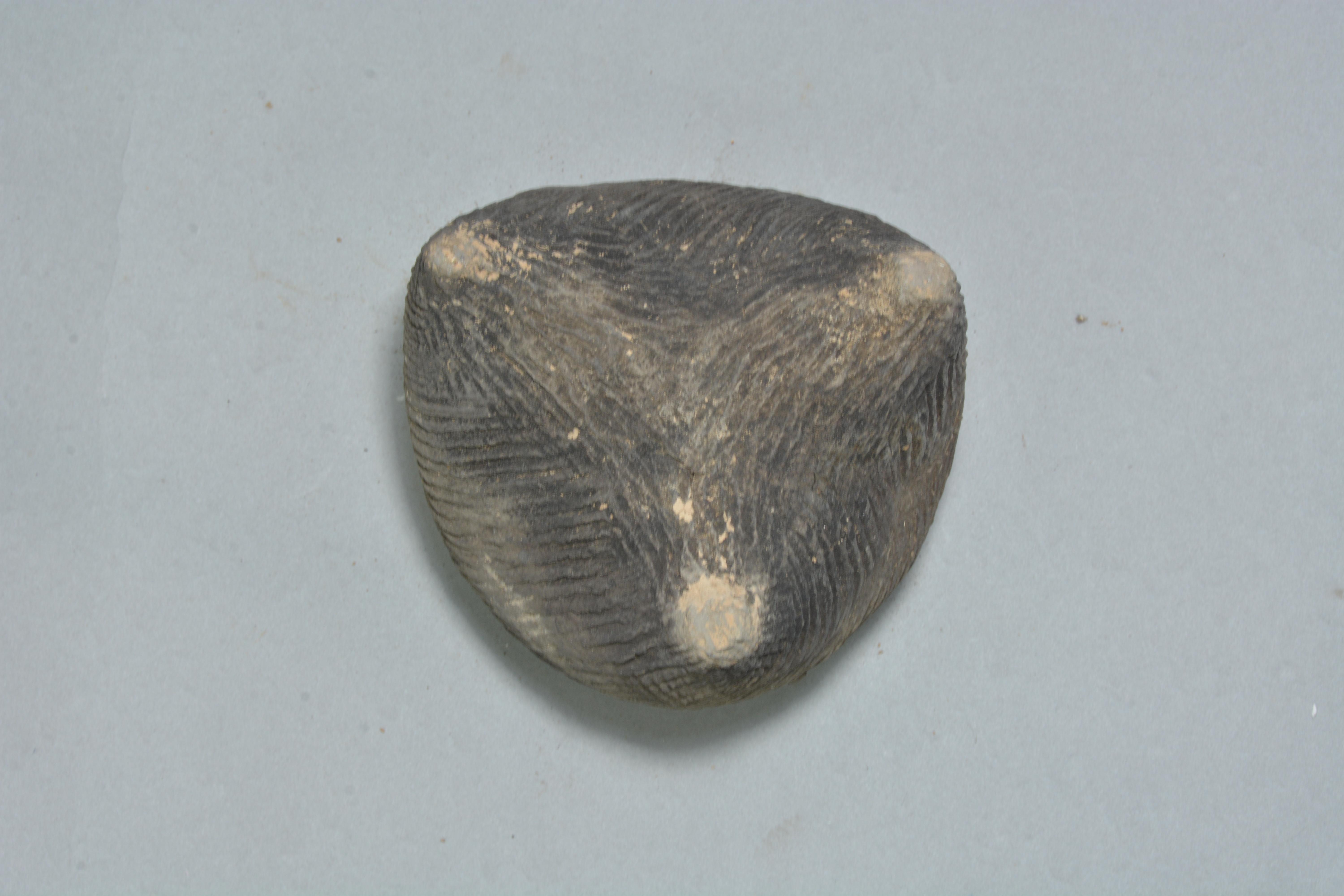 泥质灰陶。敞口,束颈,腹微鼓,三袋足,分裆。器表满饰绳纹。