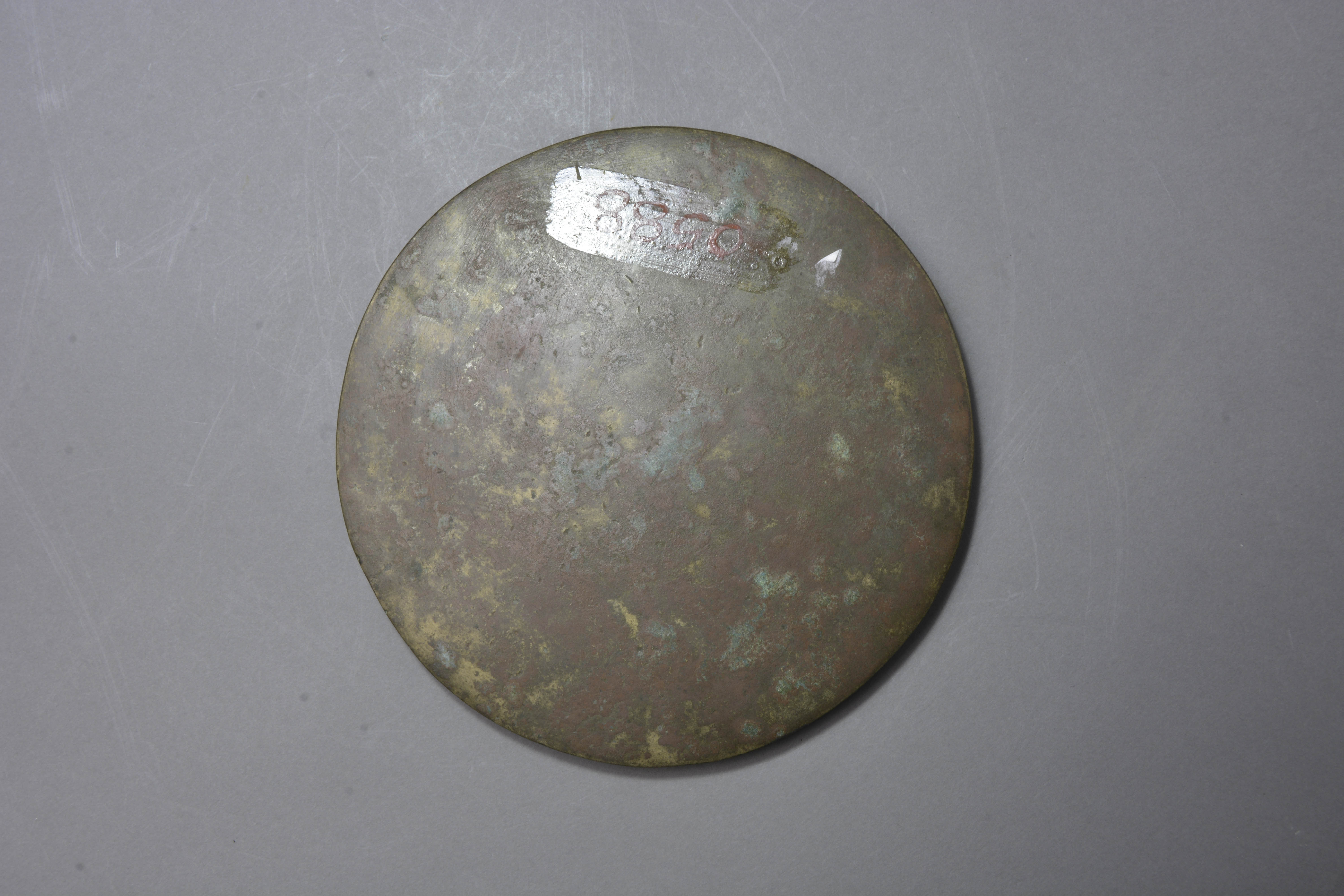 圆形,圆钮,圆钮座。弦纹高圈将镜分为内外两区。内区四马各有意态,有的四顾盼,有的昂首张口,但多作奔驰状。外区铭文带“尚得秦王镜,非不惜千金,非吴欲照瞻”。因锈蚀严重其它字难易辨认。双重缘。