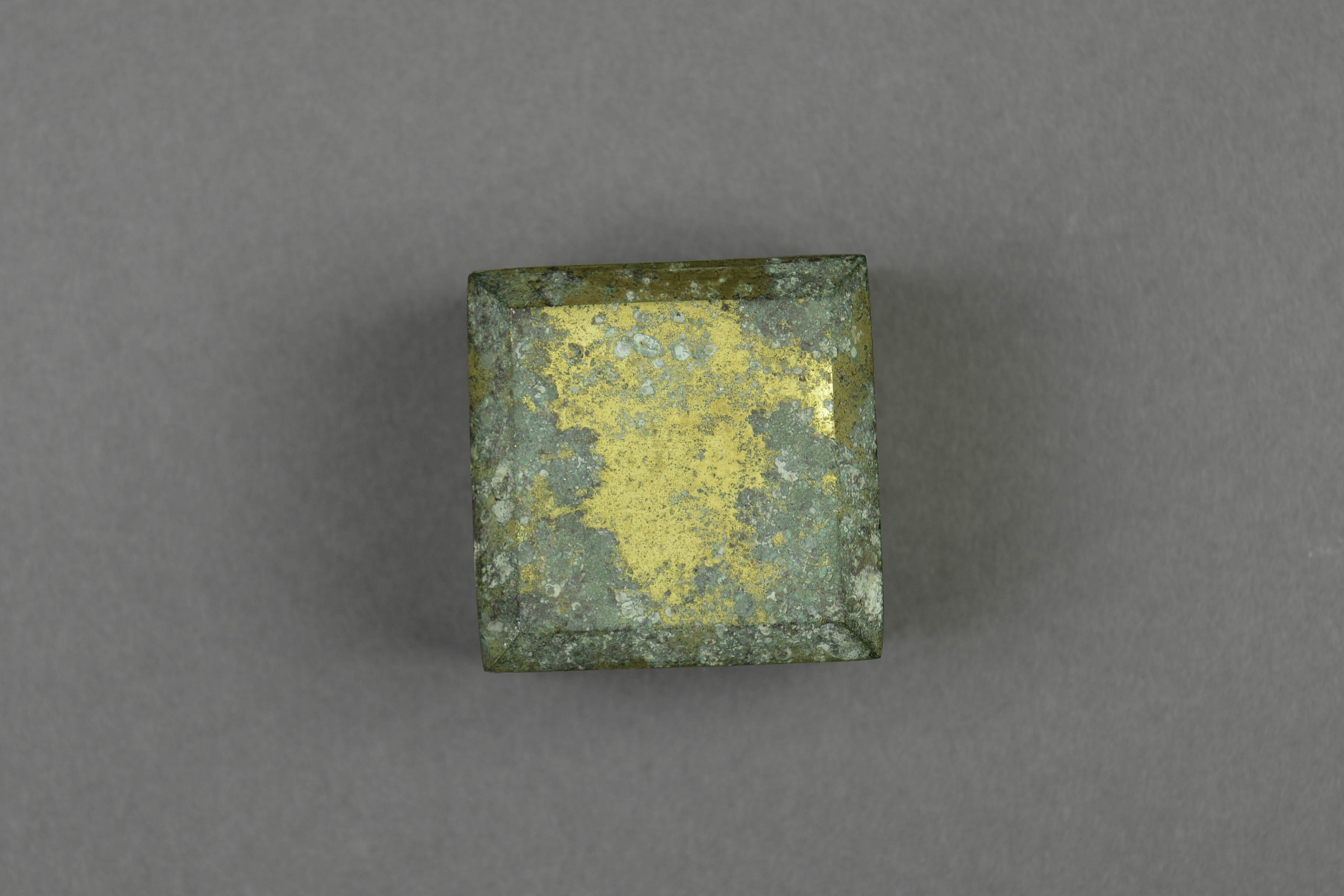 6.4cm;高7.3cm。正方形盝顶,子母口,函身呈方形,鎏金。