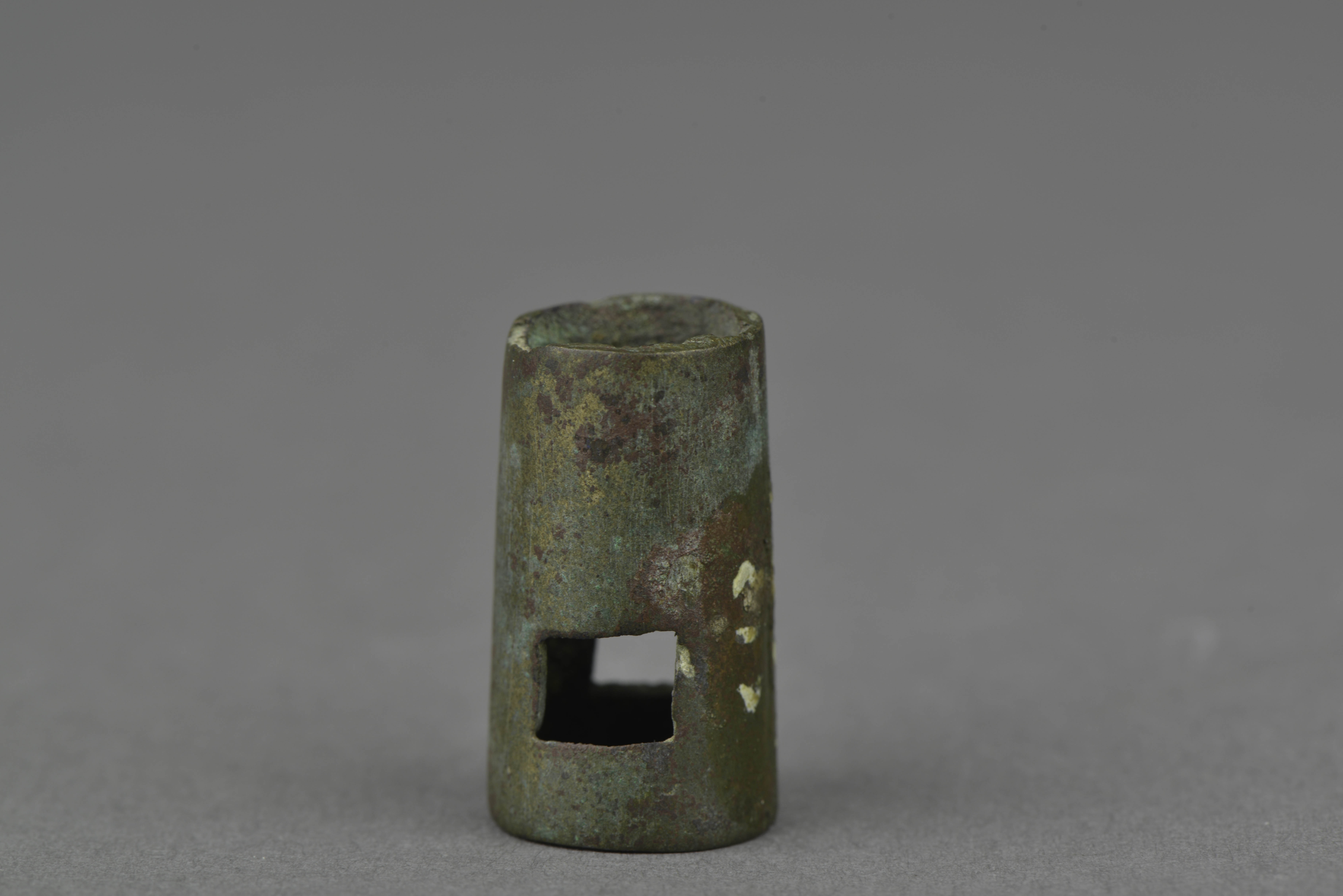 管状,上小下大,大孔近处有一对应穿孔。四件器型相同。