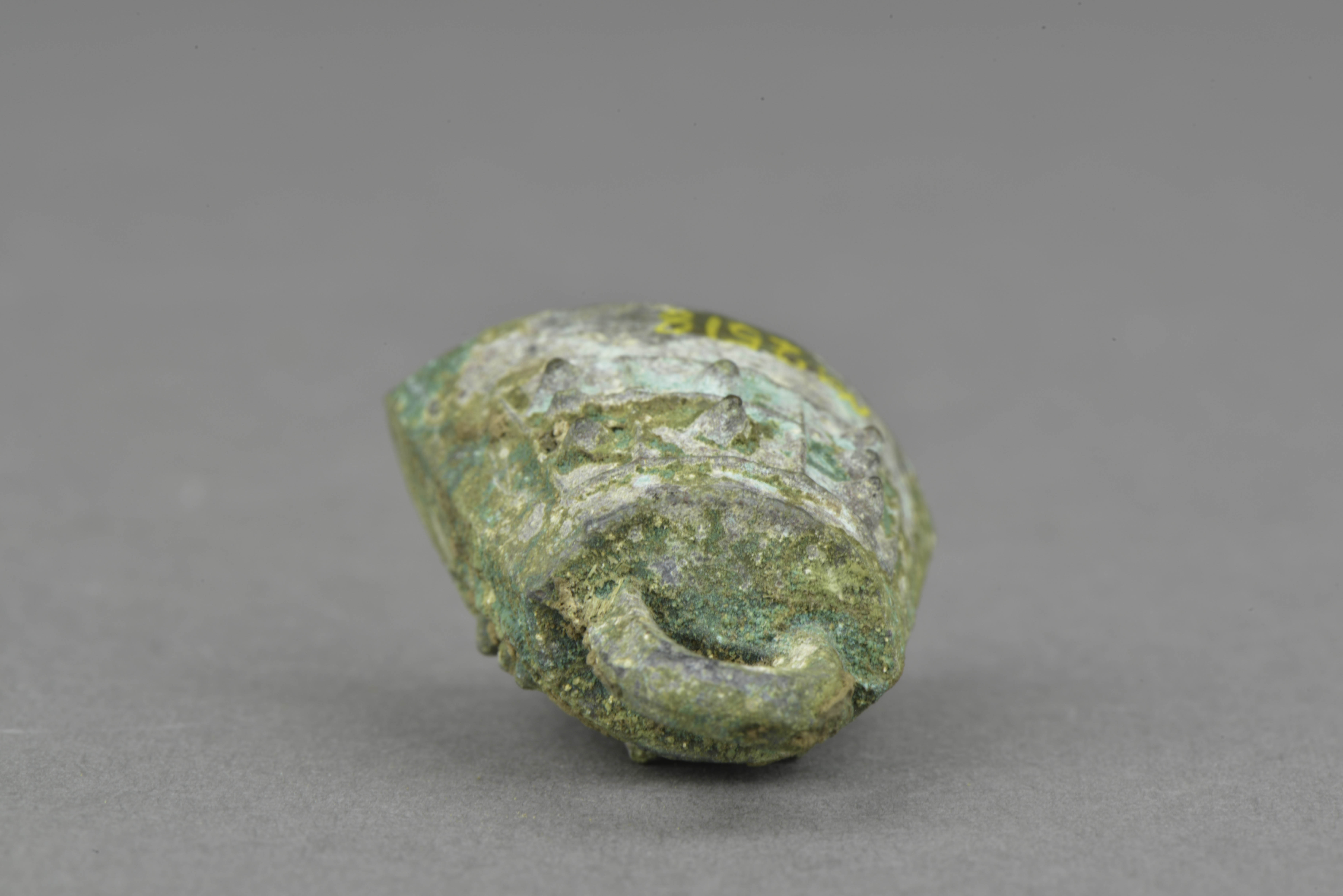 器壁特薄,形体矮小。截面为椭圆形,顶部有半环形钮,钮下有一小穿孔与腹部贯通,孔上衔接一铃舌,摇之即响。铃身正面、背面饰方格纹分割的乳钉纹。