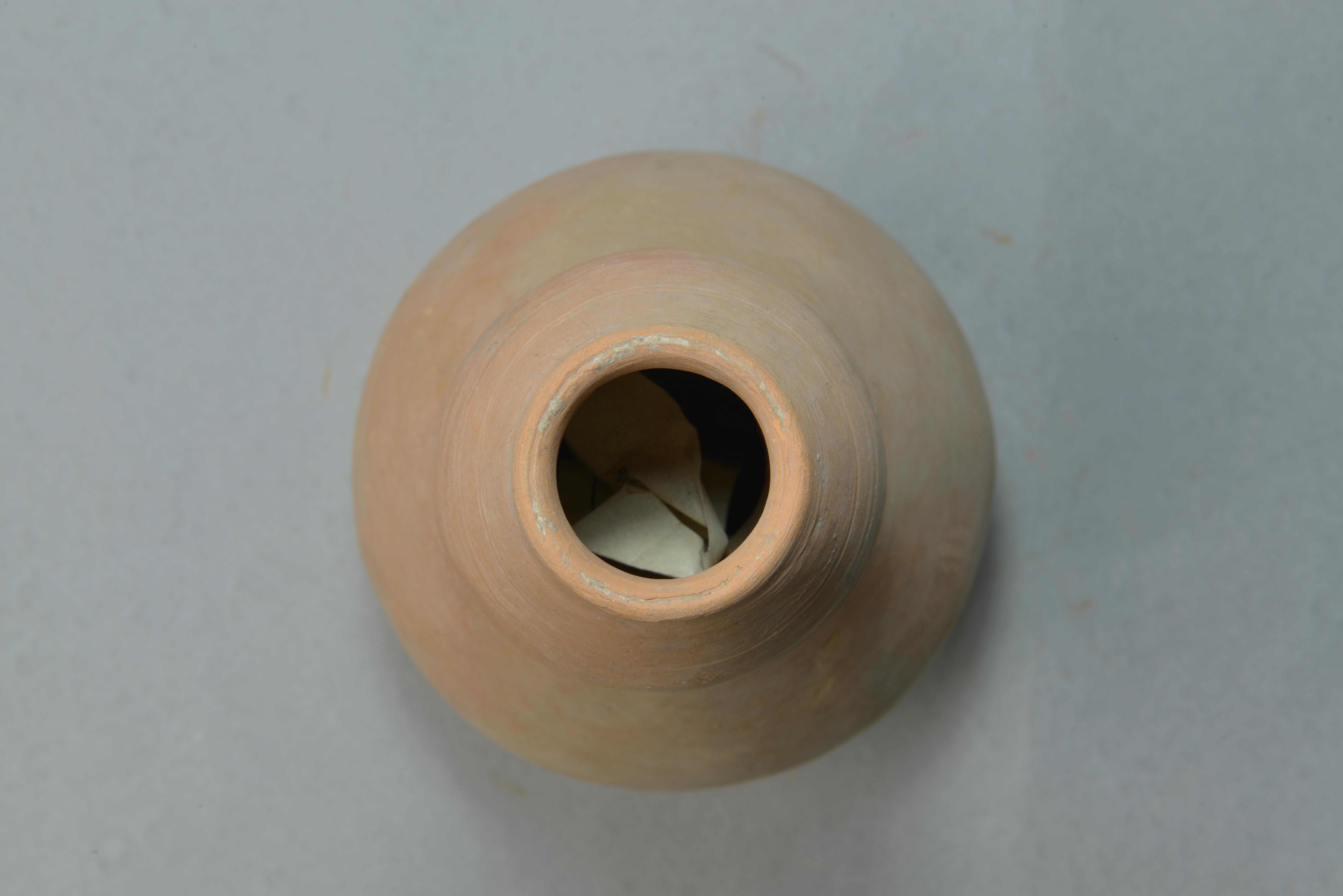 泥质红陶。器呈葫芦形,小敛口,平底。