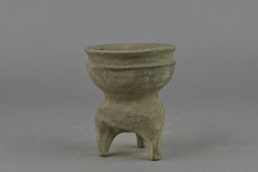 泥质陶。盘口形,短束颈,圆肩,深鼓腹下收,小平底。器表罩白色化妆土,腹上部红彩绘仰莲纹。