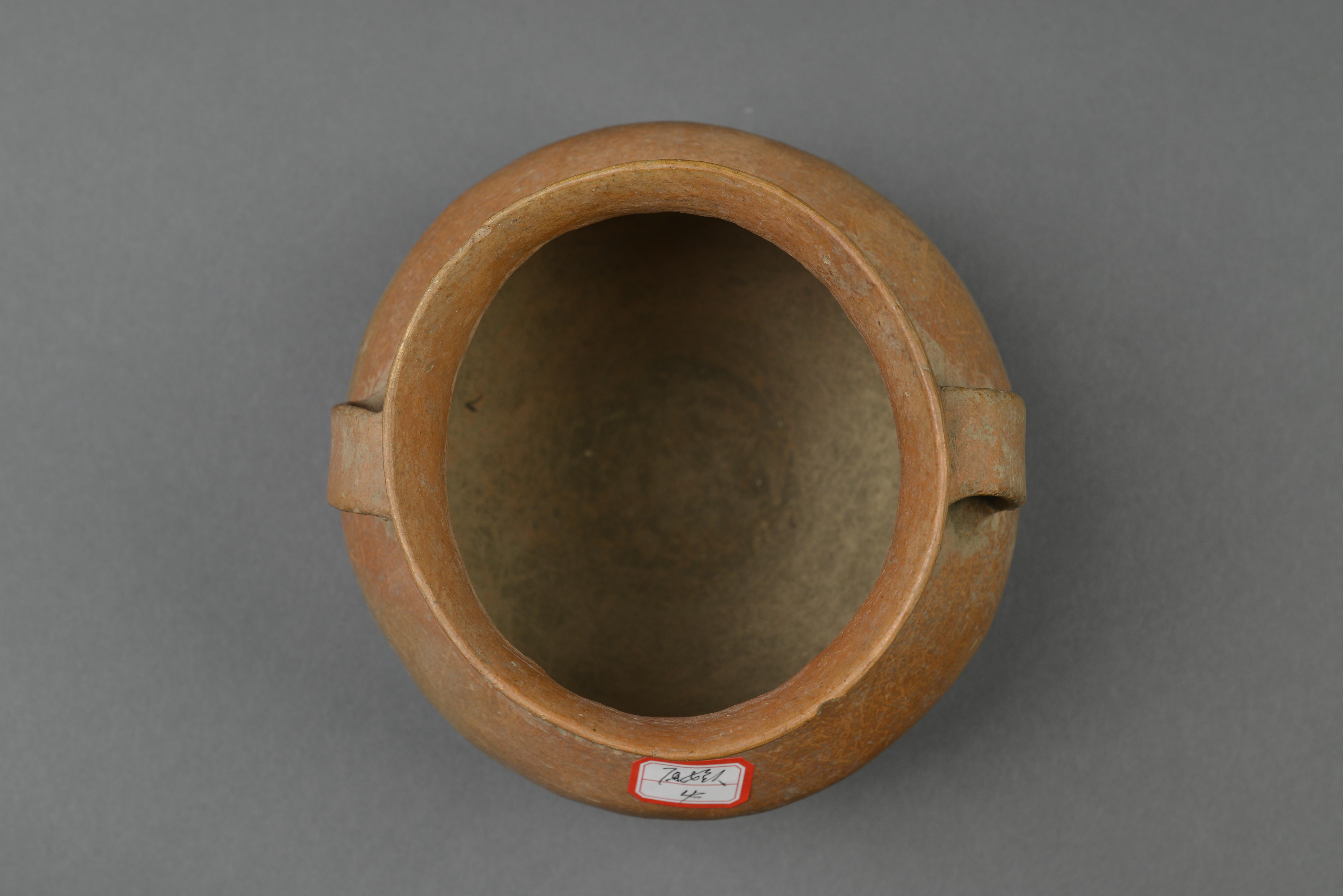 内容:细泥红陶。侈口,高领,溜肩,斜鼓腹,小平底,领部作对称双耳,肩口部饰一周剔刺纹,下腹部及底部饰篮纹。