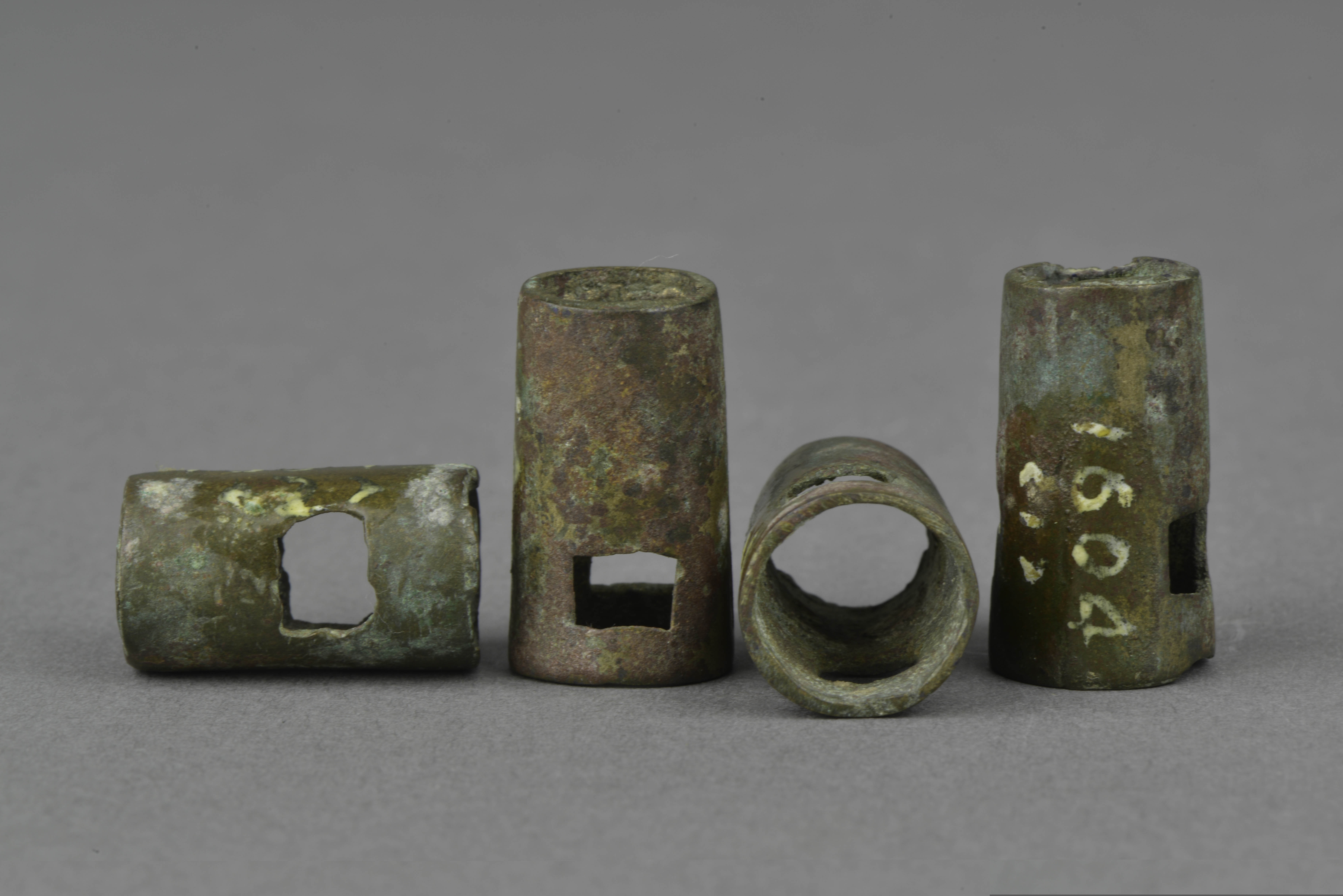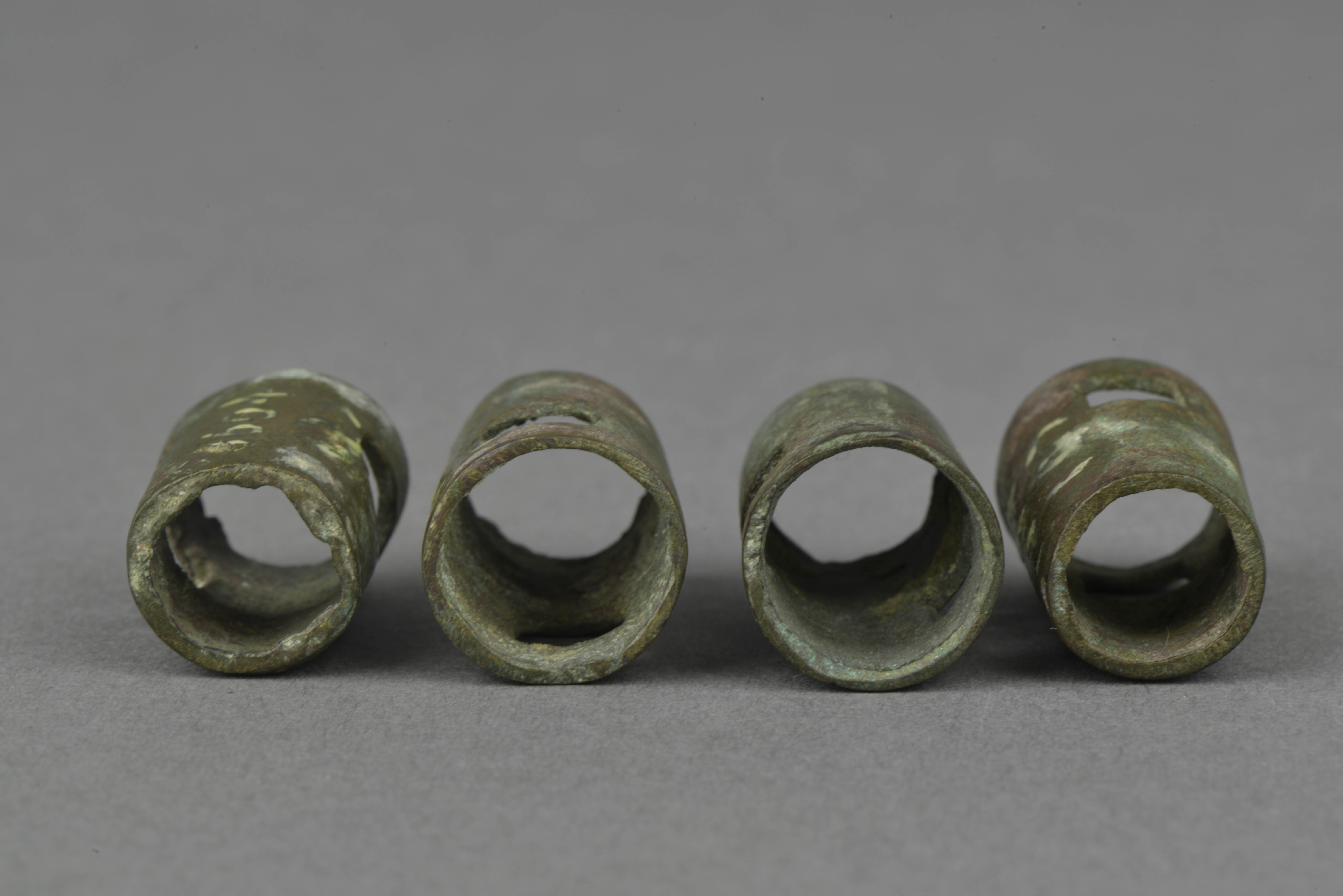 管状,上小下大,大孔近处有一对应穿孔。四件器型相同。