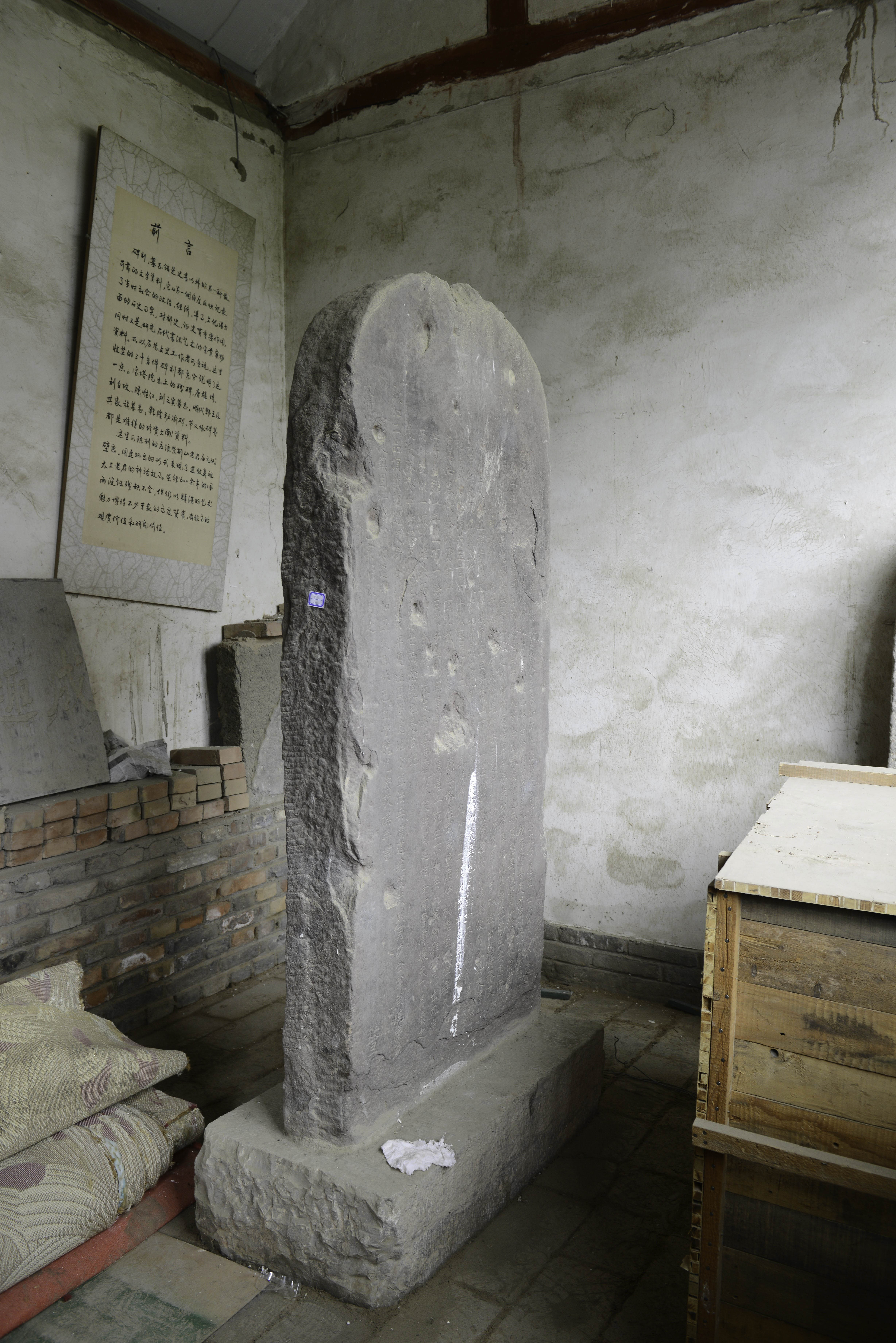 棕褐色砂质岩,分化严重,大面积剥落,首半圆形,无座,光绪乙亥,16行,素背。